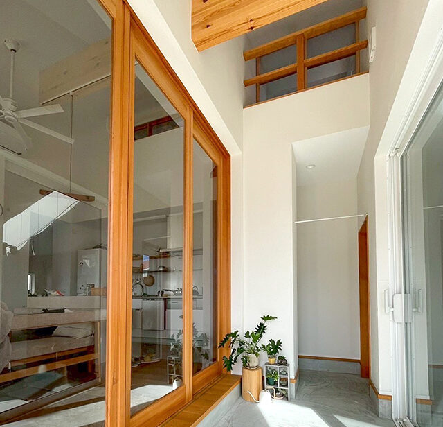 ◾️大きな土間からは景色が楽しめる木製ガラス戸