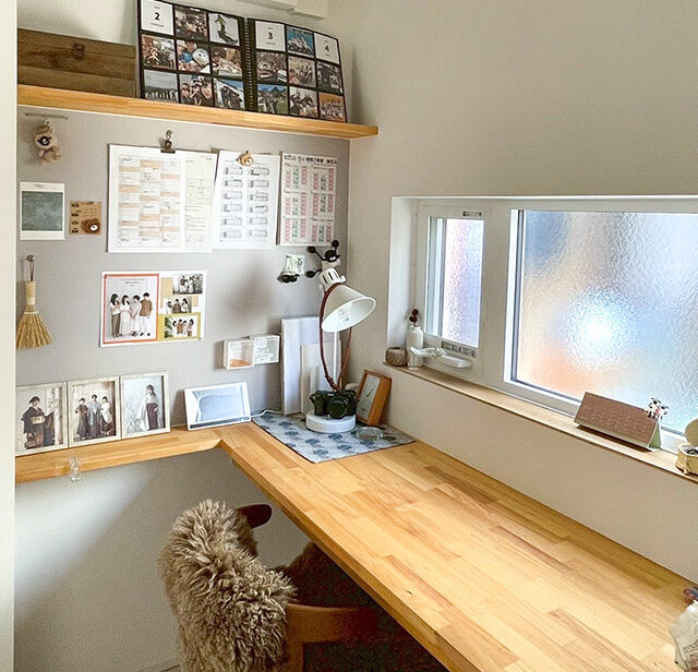 奥さまのための家事室には、パソコンをしまえるカウンターを設計。